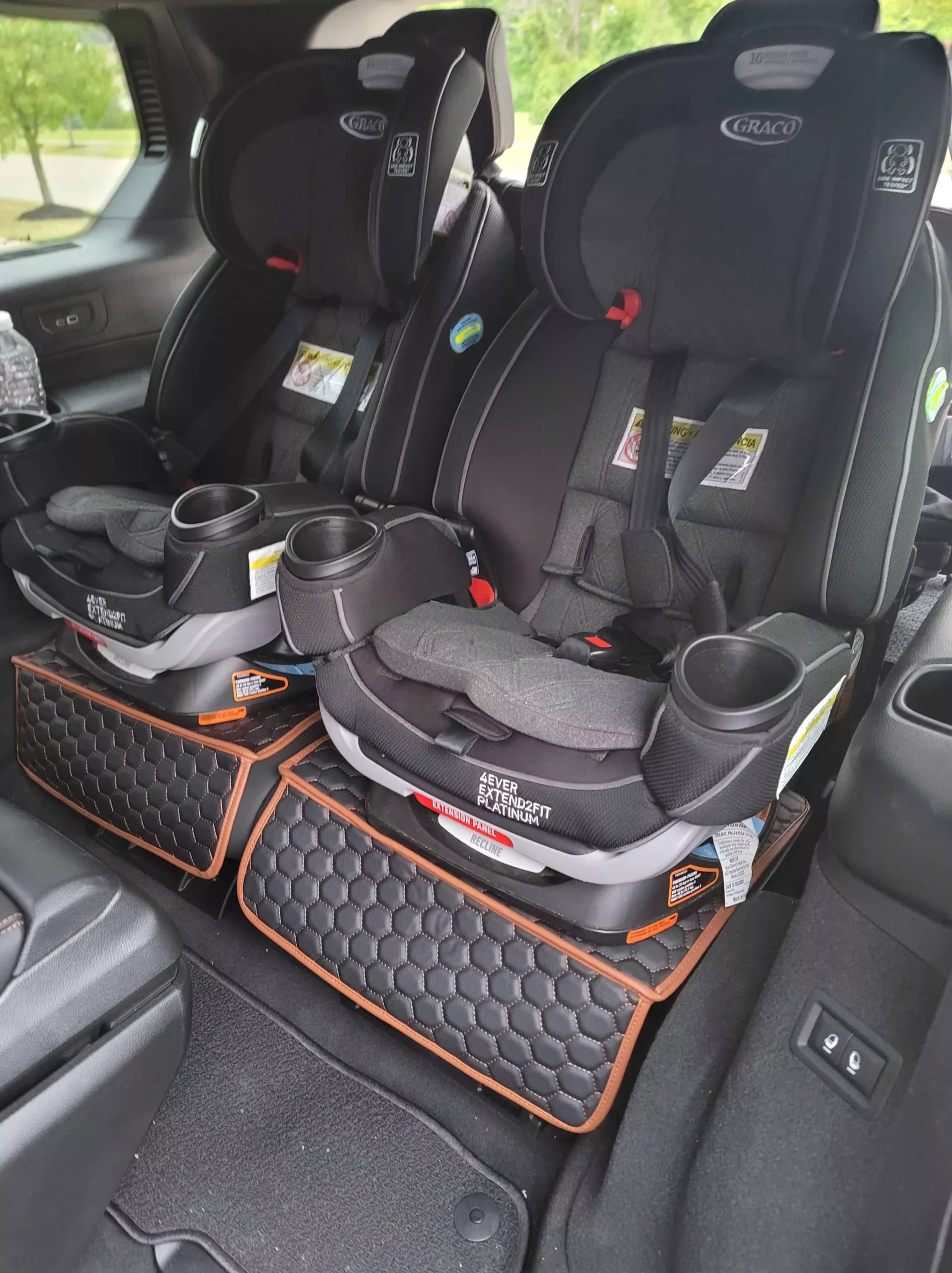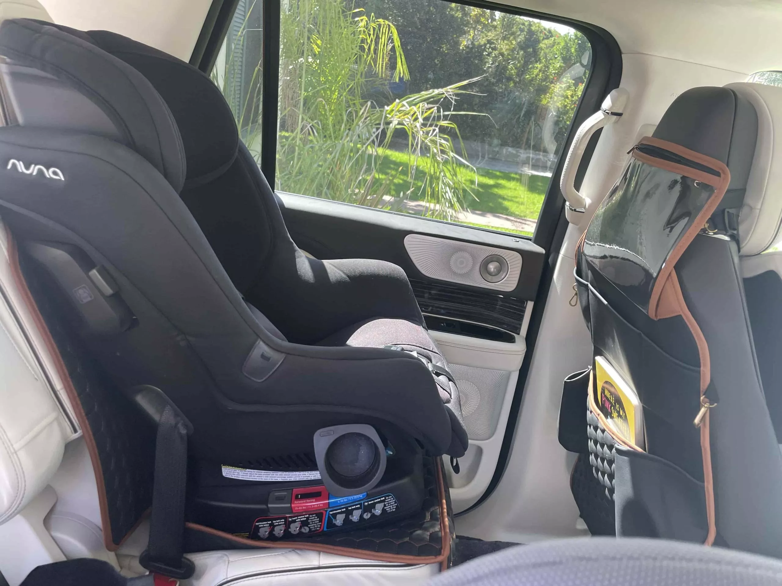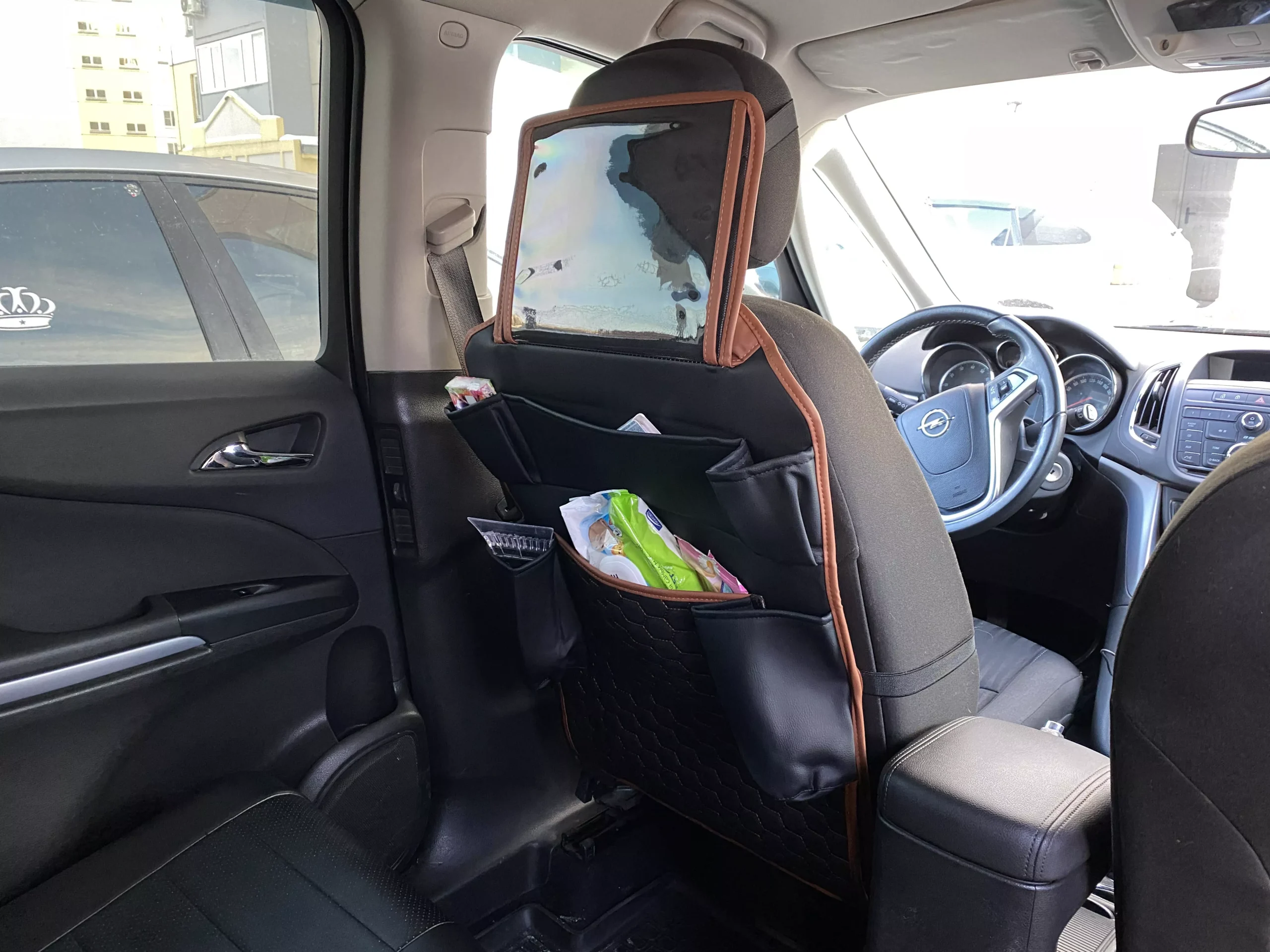 Eight pockets keep drinks, snacks, toys, and books right at hand. Separate pocket for tablets and phones specifically designed for touch-friendly use – so kids can watch cartoons as the miles (and minutes) go by.