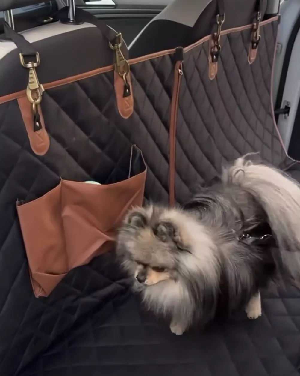 This car dog hammock fits most vehicles with detachable headrests. It also features a unique split design – just undo the zipper in the middle to save space and use this dog hammock on one side of the seat. And when not in use, you can easily fold it up and carry conveniently by the handle. Perfect for travel lovers!