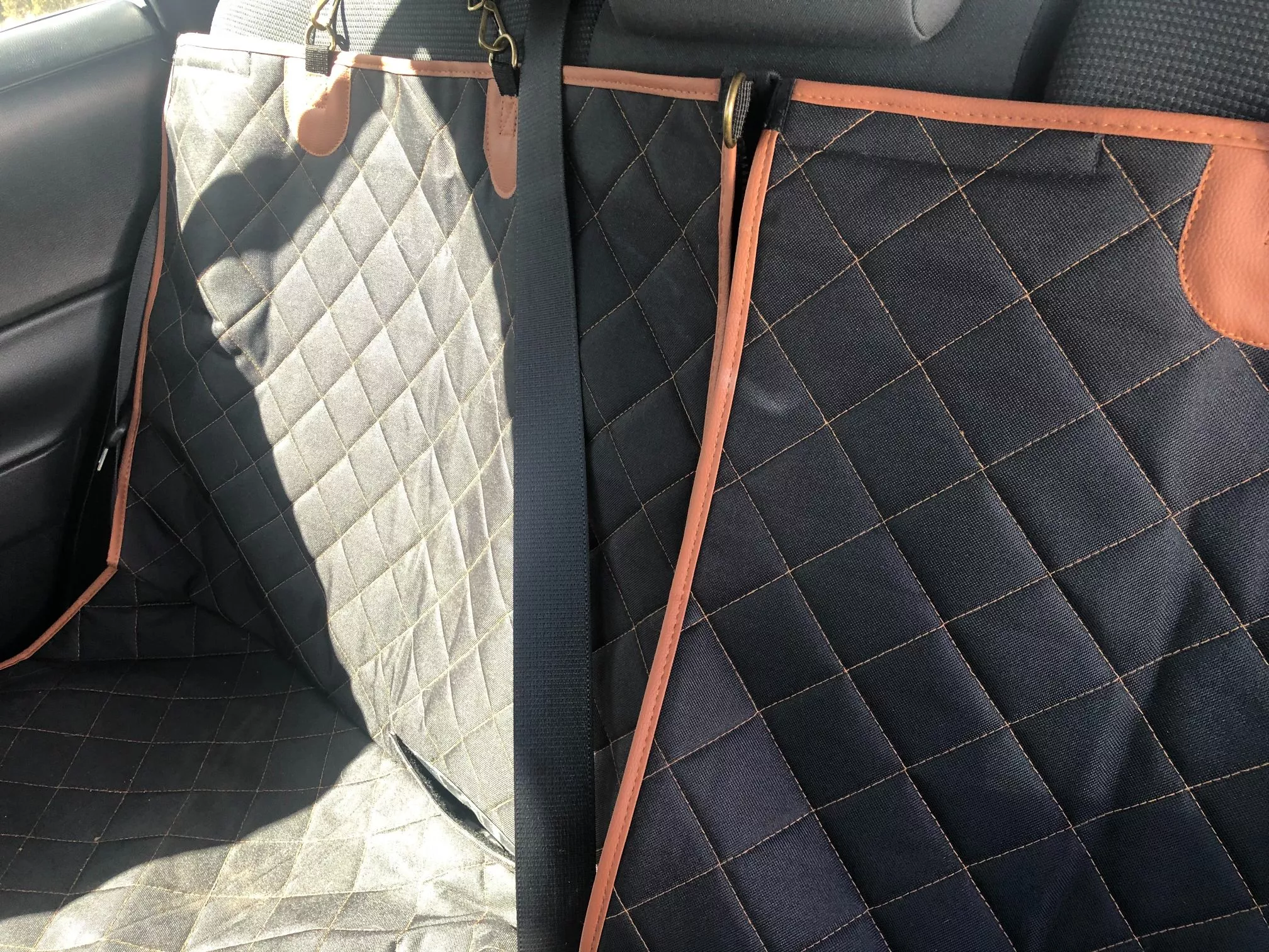 Metal buckles and zippers, nylon straps, seat anchors, and a non-slip bottom layer keep this dog seat cover firmly in place when on the road. Plus, installation is simple and takes just a couple of minutes.