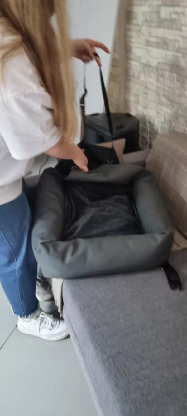 Create a cozy and safe place for your pet in the car with our soft booster seat. And of course, don’t forget to secure a dog safety belt to the loop in the fold!